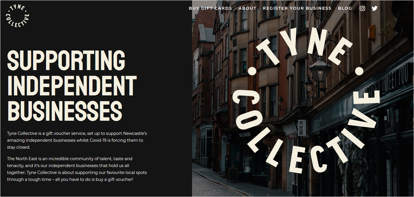 During the lockdown a group called Tyne Collective set up a gift voucher scheme to try to help out local independent businesses with their immediate cash flow issues, with this simple pitch: “Buying a gift voucher for your favourite local business will help support them during this tough time. Your purchase directly helps businesses in need as well as giving something for you or a loved one to look forward to!”